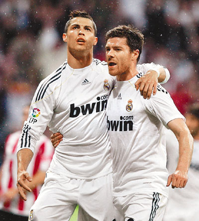 ■沙比阿朗素(右)與C.朗拿度都具射門腳頭。 美聯社