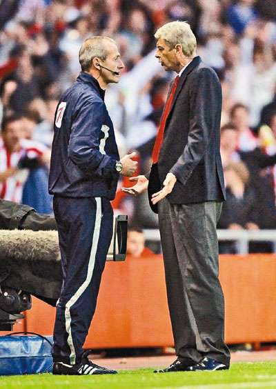 【綜合外電】阿仙奴在周末英超聯賽上品嘗先甜後苦滋味,法比加斯的幸運入球助他們早早領先,但客場對新特蘭的「兵工廠」隨後接連遭遇桑治被罰下場及路斯基12碼射失的苦澀,更悲情的是在終場補時最後一分鐘被對手戴倫賓特扳平,痛失兩分。「廠長」雲加賽後抱怨新特蘭補時入波超過補時時間,故在場邊推搡第4球證,或將遭到英足總處罰。
