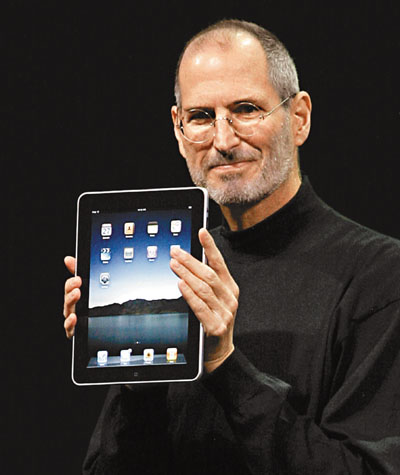 ■喬布斯回覆iPad相關查詢時,與一名大學生爆發電郵戰。圖為喬布斯早前發佈iPad產品。法新社