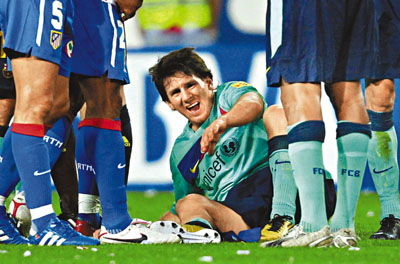 【綜合外電】美斯擺脫南非世界盃的低迷狀態,個人在今季各項賽事的入球紀錄已增添至7個,惟這位巴塞羅那球星昨晨在西甲賽事傳射建功後卻扭傷腳踝韌帶,最少要缺陣兩輪聯賽。巴塞教練哥迪奧拿讚美斯球風誠實,並呼籲球證不單止要保護C.朗拿度(C朗),所有場上的球員都應獲得保護。