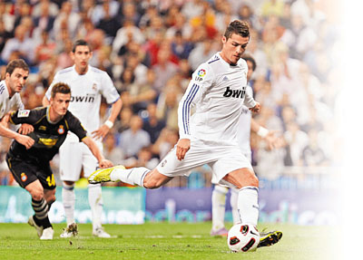 【綜合外電】C.朗拿度(C朗)去年挾十億港元身價來投,皇馬球迷對他寄予厚望,要求甚高。這位開季多次望門輕歎的天王巨星,昨晨西甲貢獻出一傳一射來回應主場球迷的噓聲。皇馬最終以3:0擊敗來訪的愛斯賓奴,慶主帥摩連奴執起教鞭十周年,「狂人」怨主場地爛令己隊贏得辛苦,又否認自己戰術保守。