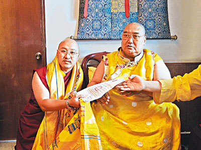 ■國師直美信雄法王將授權確認書賜予祖古白瑪奧色仁波切