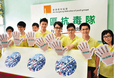 ■青少年濫藥問題備受關注,有消息指當局有意將校園驗毒計劃推廣至全港中學。圖為早前多區成立抗毒隊防治濫藥。 資料圖片