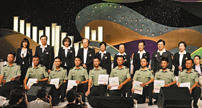 【本報訊】(記者 解玲)由全國政協副主席董建華夫人董趙洪娉、行政長官曾蔭權夫人曾鮑笑薇等率領,香港工商界、演藝界代表組成的中秋探訪團,昨日親臨昂船洲海軍基地探訪解放軍駐港部隊,官兵與各界人士以足球友誼賽、文藝聯歡、遊戲互動等活動,共慶駐港部隊進駐香港以來軍民共度的第13個中秋佳節。