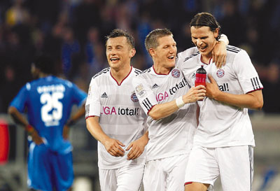 ■拜仁前中後三線的(左起)奧歷、舒韋恩史迪加與雲拜頓。路透社