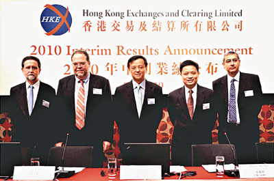 李小加等港交所主要負責人在業績公佈會上
