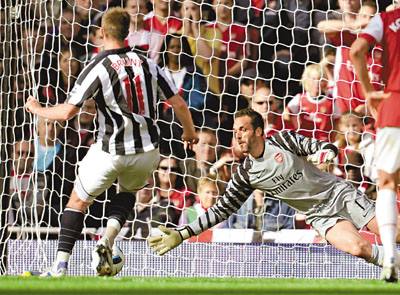 【綜合外電】阿仙奴在英超聯賽第6輪主場2:3負於西布朗,在場上失誤連連的門將艾蒙尼亞成為了「兵工廠」的致命傷,但主帥雲加卻並未因此遷怒愛將。上半場,艾蒙尼亞在12碼點附近撲倒對方球員被出示一張黃牌,送給客隊一記12碼,不過救出;但下半場,艾蒙尼亞的表現更是讓人大跌眼鏡,他先是面對干沙路查拉的射門撲球脫手,眼睜睜地看著球落入網中;隨後,他又因為過早出擊,讓謝路美湯馬士面對空門輕鬆入球。雖然拿斯尼為阿仙奴扳回兩球,但「兵工廠」還是主場告負。