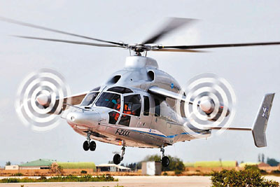 歐洲直升機公司(歐直公司)最新研發的新一代革命性直升機(見圖),日前在法國亮相。這架代號為X3的高速直升機特別之處,在於結合定翼機和直升機2者的優點。X3機身兩側配備螺旋槳,連同機頂5葉主旋翼,最高巡航時速逾400公里,較普通直升機快近70%。