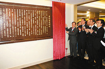 曾蔭權、唐英年、黎桂康、高玉琛為聯會會所落成碑記揭碑。