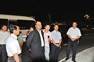 ■烏魯木齊市市長吉爾拉.衣沙木丁(左二),市委常委、常務副市長張鴻(左一),副市長李宏斌(右二)一同視察市政市容建設情況。