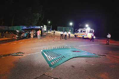 ¡@«È³f¨®¼²¶òÅK¹h«á¾l¶Õ¥¼¤F¡AÄòªu±×¸ô½Ä¥X¼X³õ¥~»Ê½å¸ô¡A¼²¤Î°±ªy¸ô®Ç¤@½ø7¤H¨p®a¨®©l§i°±¤U¡A«È³f¨®¨®ÀYÄY«·l·´¡A¾×·¬Á¼þÃzµõ¡A±ç¡B³¯2¤H¤À§O¼²¶ËÀY¡BÁy©M¸}¡A¤@«×³Q§x¨®´[¤º¡A¦Ó³Q¼²ªº7¤H¨p®a¨®¨®ÀY¥ç¥W³´·l·´¡C