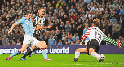 淪為後備的曼城前鋒艾迪巴約難得打正選,積極跑動攻門,但風頭卻被近來也屈居後備的阿當莊臣搶過,這位英格蘭側擊小將在37分鐘成功入楔,接今季加盟後表現出色的防中耶耶托尼直傳射入扳平,其後曼城有巴利頭槌攻門中柱不入。迪比亞路完場前勁射中楣底彈出,結果雙方各得1分。