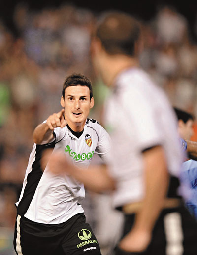 昨晨西甲聯賽,華倫西亞主場2:1力挫畢爾包,鞏固榜首地位。主隊上半場11分鐘,由阿杜里斯(見圖)頭槌破網,先拔頭籌。踢到補時階段,維辛迪射成2:0。畢爾包完場前一刻,靠自由球破蛋。華倫西亞6戰得16分,排在榜首,領先少踢一場的維拉利爾及巴塞羅那4分。同日,皇家蘇斯達主場1:0擊敗愛斯賓奴;下半場十人應戰的薩拉戈薩,兩球落後下,主場逼和希杭2:2。