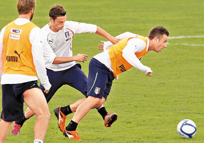 ■意國前鋒卡斯辛奴(右)闖過隊友馬治斯奧。 美聯社