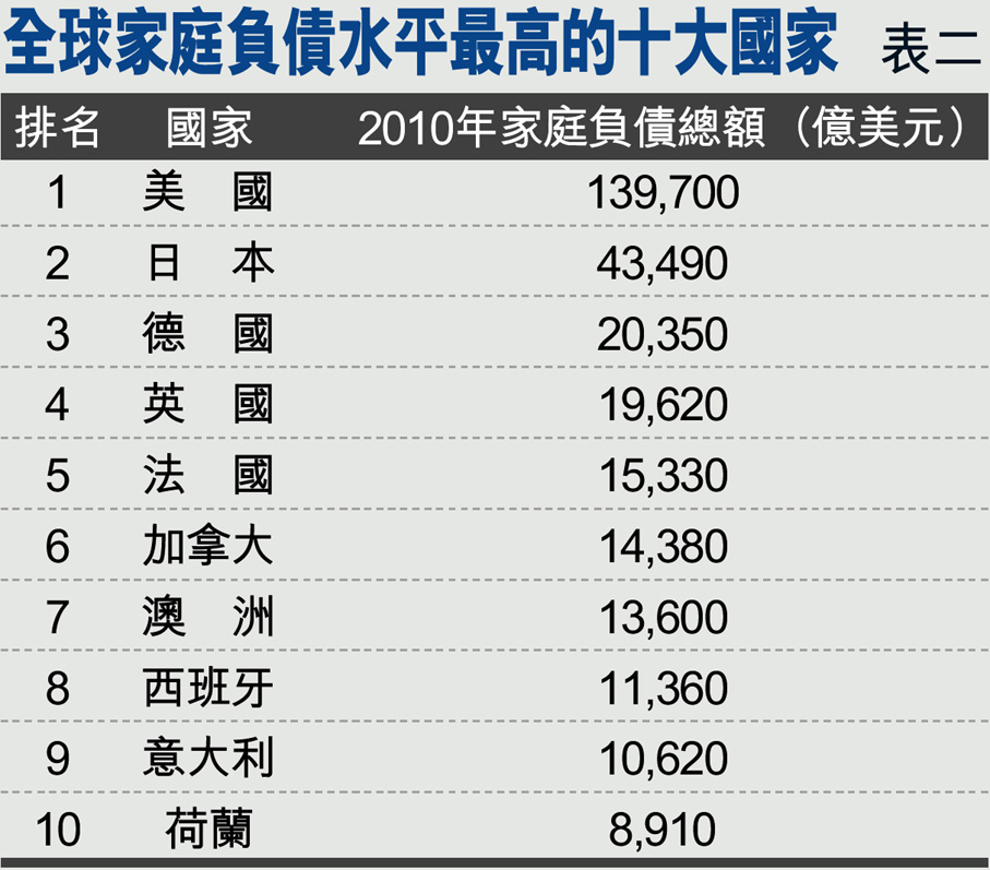 全球家庭負債水平最高的十大國家(表二) (圖)