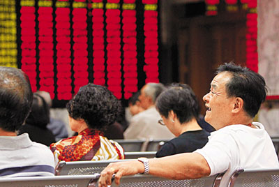 ■滬深股市假後復市大漲,上證綜指重上2700關。圖為股民在上海一家證券營業部內關注股市行情。新華社