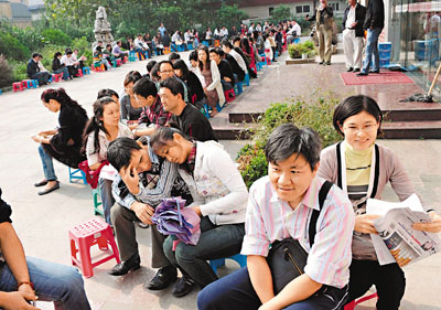 ■昨日,像這樣的「人龍」出現在內地無數城市中。新華社