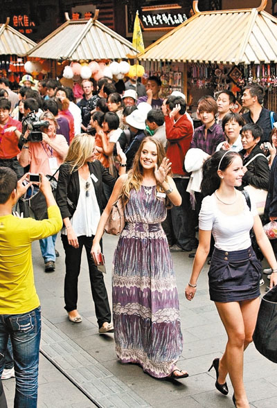 10日,將赴海南三亞參加第60屆世界小姐大賽總決賽的125名各國冠軍佳麗來到上海豫園,親身體驗「豫園中國日」活動。 新華社