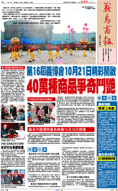 義烏中國僑商會長峰會10月19日開幕 (圖)