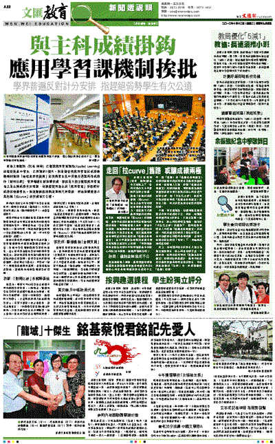 香港文匯報訊 (記者 周婷) 已報讀應用學習課程(Applied Learning)的首批新高中學生,已開課約1個月。有教師發現應用學習的成績匯報機制竟將「達標並表現優異」級別與學生在中英數及通識所得成績作「對照比較」,學界普遍反對有關安排,原因是大部分報讀應用學習者正是主科成績未如理想,卻想藉實用為主的「應用學習」爭取較好成績的弱勢學生。有教師團體將與教育局代表會面,表達有關變相以其他科「拉curve」的安排有欠公道。