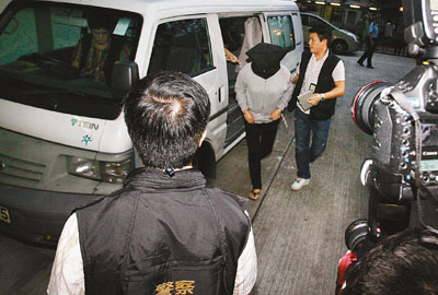 ■大窩口h兇案被捕女主犯,由探員押返現場重組案情。