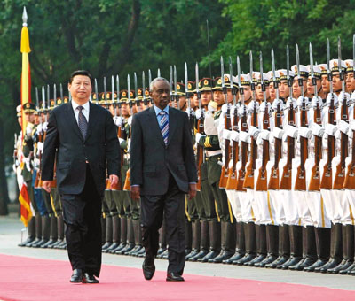 ■18日在北京閉幕的中共十七屆五中全會決定,增補習近平為中央軍事委員會副主席。圖為習近平陪同外國貴賓檢閱解放軍三軍儀仗隊。