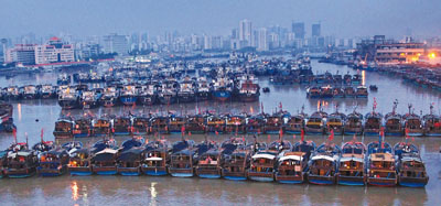 ■超強颱風「鮎魚」預計將於22日下午至23日在海南東部到廣東中部沿海一帶登陸。圖為漁船18日紛紛回到海南省海口新港避風。香港文匯報海南傳真