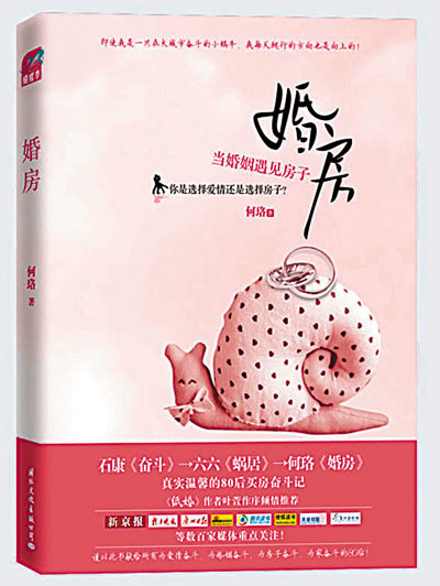 《婚房》是作者何珞的一部半自傳體小說,她用溫馨浪漫的語言講述了一對80後北漂戀人為「買房結婚」奮鬥的故事。程皓和女友林小洛,經歷了大學純真的黃昏戀,經歷了兩地相隔的苦思,經歷了同居的甜蜜與摩擦,他們曾為租房結婚還是買房結婚猶豫過,也曾為留在北京還是回故鄉發展徘徊過。但是,最終兩人選擇了一起奮鬥一套北京的房子,作為他們的婚房。