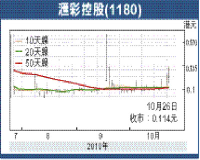 匯彩控股(1180)昨基於有若干新聞報道指出,集團可能出售生物醫藥業務,而於早市開市不久即拉閘停賽;在中午作出澄清後,股份於午後復賽,股價甫開市即搶高至0.134元,最後回順至0.114元報收,倒跌0.001元,成交2,854.7萬元。據匯彩的通告指出,集團正探索出售生物醫藥業務的機會,並正就有關出售與一位潛在買家展開初步磋商。由於集團近年已全力轉型成為澳門博彩概念股,如今逐步決定淡出生物醫藥業務,有助集中資源拓展主營業務,消息應屬正面,故有繼續留意價值。