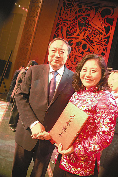 香港文匯報訊 由中華人民共和國文化部、山東省人民政府聯合主辦,文化部非物質文化遺產司、中國非物質文化遺產保護中心、濟南市人民政府與山東省文化廳共同承辦的首屆中國非物質文化遺產博覽會,日前在濟南舜耕國際會展中心隆重舉行。盧雪剪紙榮獲首屆中國非物質文化遺產博覽會最高獎金獎,文化部原副部長周和平給盧雪頒發金獎榮譽證書。