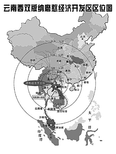 獨特的區位優勢,良好的投資氛圍,優秀的通關服務,便捷的交通環境,為磨憨帶來了難得的發展機遇。磨憨經濟開發區管委會有關負責人介紹說,磨憨經濟開發區將大力實施「綠色生態立區、國際通道活區、人才服務興區、商貿旅遊富區、新型工業強區」五大戰略,構建信息、金融、物流、旅遊、加工、貿易六大平台,努力把磨憨建設成為面向東南亞的物流基地、商貿基地、加工基地和現代服務基地,使磨憨成為中國走向東南亞、連接兩洋三洲的國際化、現代化黃金口岸城市。