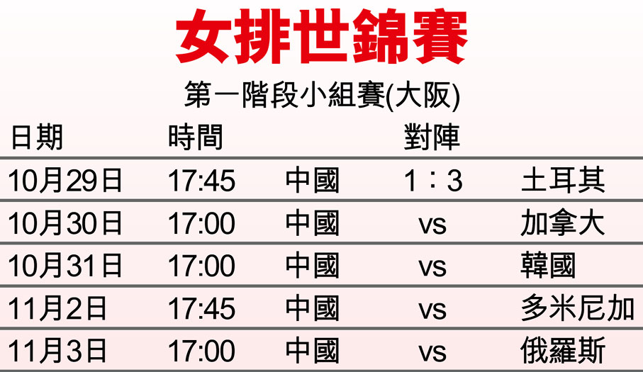 中國女排負土耳其 世錦賽出師不利 (2010-10-30) (圖)