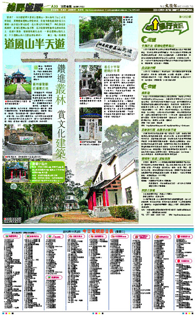 秋涼了,今次遊蹤帶大家登上道風山。別以為叫「山」必定很難走,其實這座道風山很容易走,你還可鑽進叢林欣賞文化建築。由沙田火車站出發,沿火車站外天橋走下,再往後走至排頭村,看到往道風山指示牌,沿沙田鄉事委員會右邊拾級而上,走過小徑後,到達迴旋處往右拐,一直沿道風山路往上走,不久道風山的入口就出現在眼前。 ■文、攝:吳綺雯