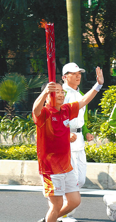 香港文匯報訊(記者梁聲劍、敖敏輝 湛江報道)廣州亞運火炬迎來第17站的傳遞,1日上午,聖火傳遞在地處中國大陸最南端的湛江市進行。香港文匯報廣東分社副社長何濤(左圖)亦參與湛江站的傳遞,作為第56棒火炬手,他與眾多火炬手一道,感受到濃濃的亞運熱情。上午11時許,最後一棒火炬手、第28屆奧運會跳水冠軍得主勞麗詩跑到終點金沙灣跳水女神廣場,與湛江市委書記陳耀光共同點燃火種盆。