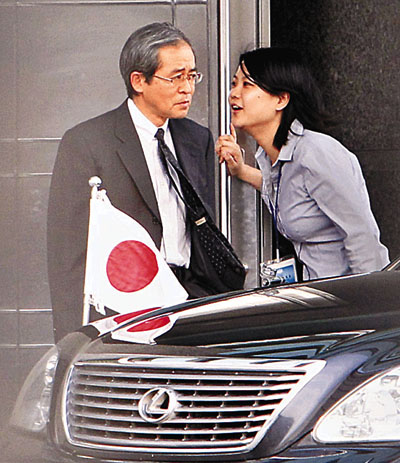 ■日本大使河野雅治(圖左)乘車離開莫斯科。 路透社