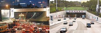 ■政府發表顧問報告認為,較可行的建議是紅隧加價、東隧減價,預計可以令紅隧車龍縮短達70%。左圖為紅隧,右圖為東隧。香港文匯報記者曾慶威、劉國權 攝
