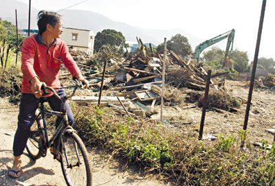 ■在菜園村居住了半世紀的羅都發稱,60%村民已遷出,自己正在錦田物色村屋暫居。港府正在清拆荒廢多年的村屋,並平整土地 。香港文匯報記者潘政祁 攝