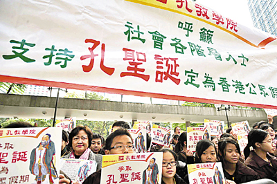 ■香港早前有市民遊行,要求政府將孔誕列為公眾假期。 資料圖片