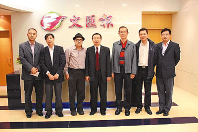 美洲商報行政總裁何國禮(左三)日前訪香港文匯報,獲香港文匯報總編輯李曉惠、海外版總編輯曾書萬等的熱情接待。 蔣天慧 攝