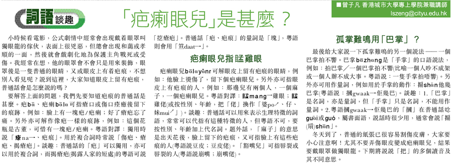 詞語談趣:「疤瘌眼兒」是甚麼? (2010-11-12) (圖)