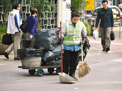 ■最低工資條例實施前後,將為清潔(上)、飲食等低薪行業帶來極大衝擊。香港文匯報記者曾慶威 攝