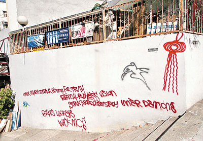 香港文匯報訊(記者 溫瑞麟)西環山道一夜間驚現逾40處塗鴉,多座大廈外牆、橫巷、公園、花店,甚至連停泊路邊的貨車,均被噴上不同圖案及文字。警方不排除是「塗鴉一族」在前晚深夜至昨日凌晨一段時間,四出瘋狂塗鴉所致。警方已列作刑事毀壞案處理,暫時無人被捕。