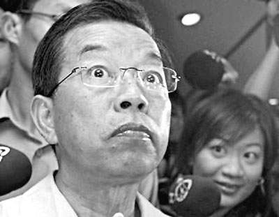 ■謝長廷爆料的時候抿著嘴、睜大眼,在記者追問下閃爍其辭後,匆忙閃身離開。 網上圖片