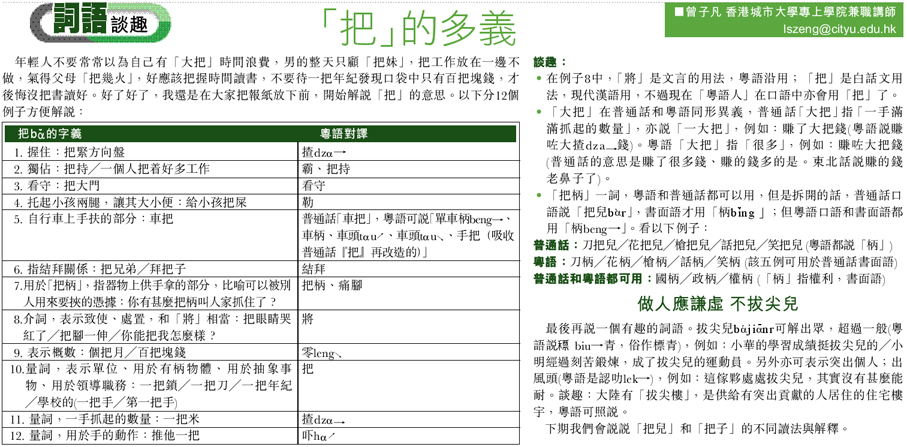 詞語談趣:「把」的多義 (2010-11-19) (圖)