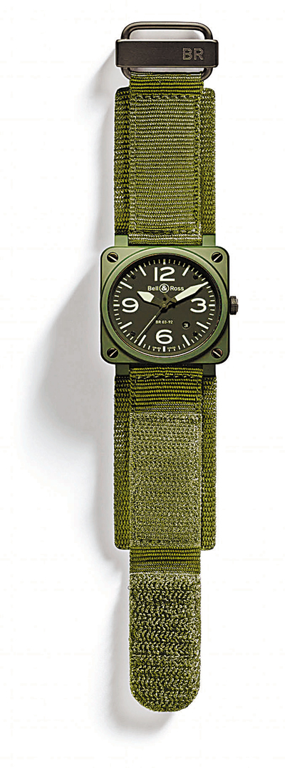 Bell & Ross是首個採用卡其色陶質物料的腕錶品牌,而BR03-92 Military Ceramic腕錶不但以獨特設計取勝,且性能卓越精準,能符合戰鬥機機師的要求,而專業硬朗的設計風格亦足以俘獲錶迷之心。
