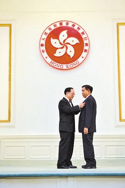 2008年,行政長官曾蔭權頒授大紫荊勳章予鄭裕彤。