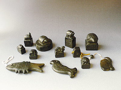 黑陶印上的龜鈕,形態各異,絕無重複。或昂首,或引頸,或側目,或縮頭。掛件都是仿古,似乎都有來歷。
