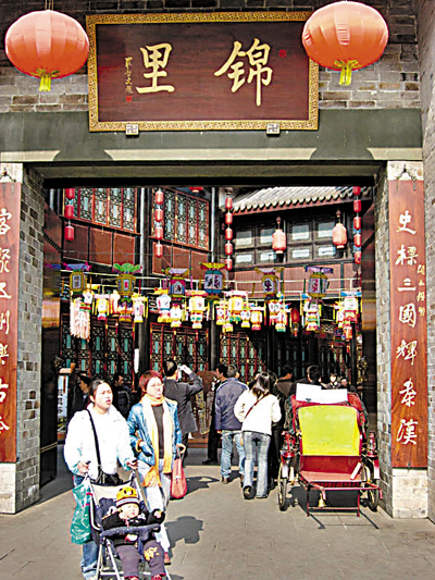 錦里是西蜀歷史上最古老、最具有商業氣息的街道之一,二零零四年對外開放,全面展示巴蜀民風民俗和三國蜀漢文化。今天的錦里古街充分展現了四川民風民俗的獨特魅力,有茶樓、客棧、酒樓、酒吧、戲台、風味小吃、工藝品、土特產等。
