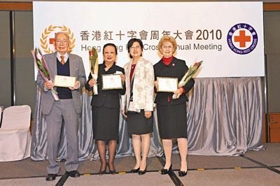 香港文匯報訊 紅十字會2010年周年大會日前假會展中心舉行,會上委任2010/11年度紅十字會董事會成員及顧問團委員,並頒發多個類別服務獎項予逾120個得獎機構、公司及個人,感謝他們推動及支持紅會的人道工作。