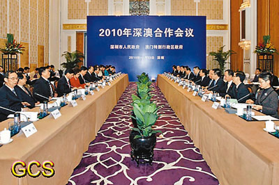 ■2010年深澳合作會議昨日在深圳舉行,深圳與澳門特區在金融、旅遊、文化、教育等方面簽署5項合作協議。 澳門新聞局網站圖片